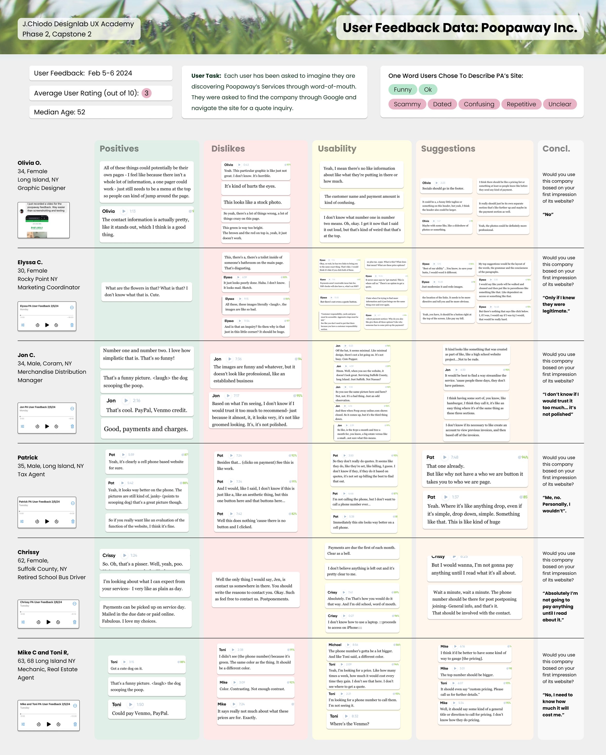I wanted to embrace the feedback—no matter how critical—to ultimately highlight the true value of Poopaway's long-standing service and experience in the local community. From this, I analyzed the most imperative issues to guide my design directive.