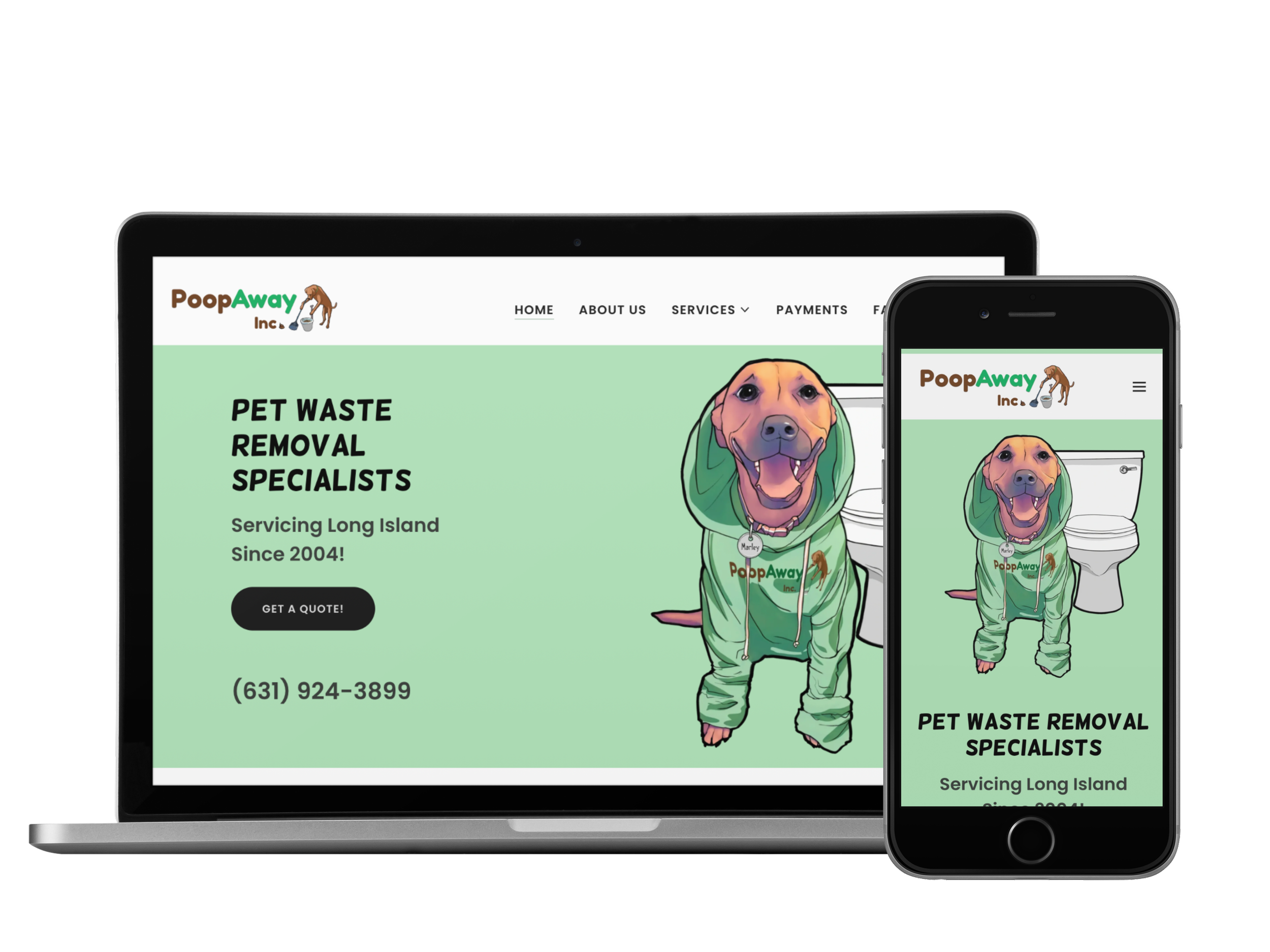 "PoopAway" is already taken, but using "PoopawayLI.com" could improve SEO. Currently, PA doesn’t rank first on Google for "pet waste removal Long Island," though the top results aren’t direct competitors in the area.